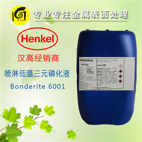 BONDERITE? 6001 是一種噴淋法低溫三元磷化系統。用于鋼、含鋅和鍍鋅鋼材的磷化處理。 膜重在 1.8 至 2.5 克/米2的范圍。膜重受到清洗方式、金屬表面狀態和工廠操作條件的影響。